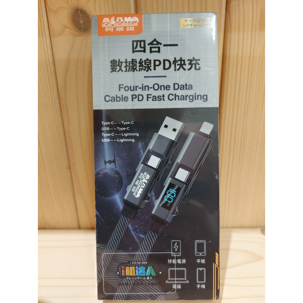 四合一數顯快充線|100W PD高速充電|Type-C / Lightning / USB 全接口支援