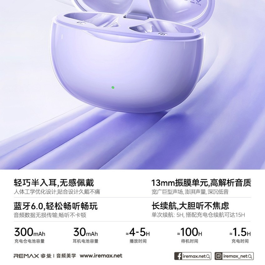 REMAX 智慧 TWS 真無線 藍牙6.0 音樂通話 耳機半入耳 長續航 耳機 藍牙耳機