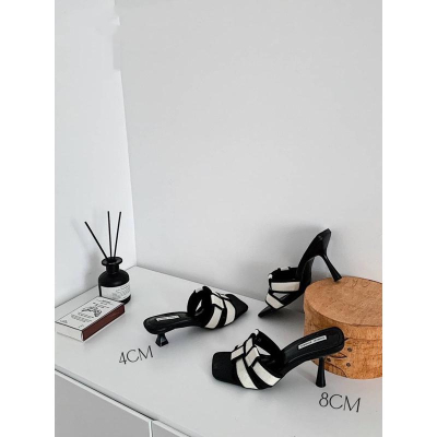 預購款❗️撞色拼接編織感涼跟鞋👡