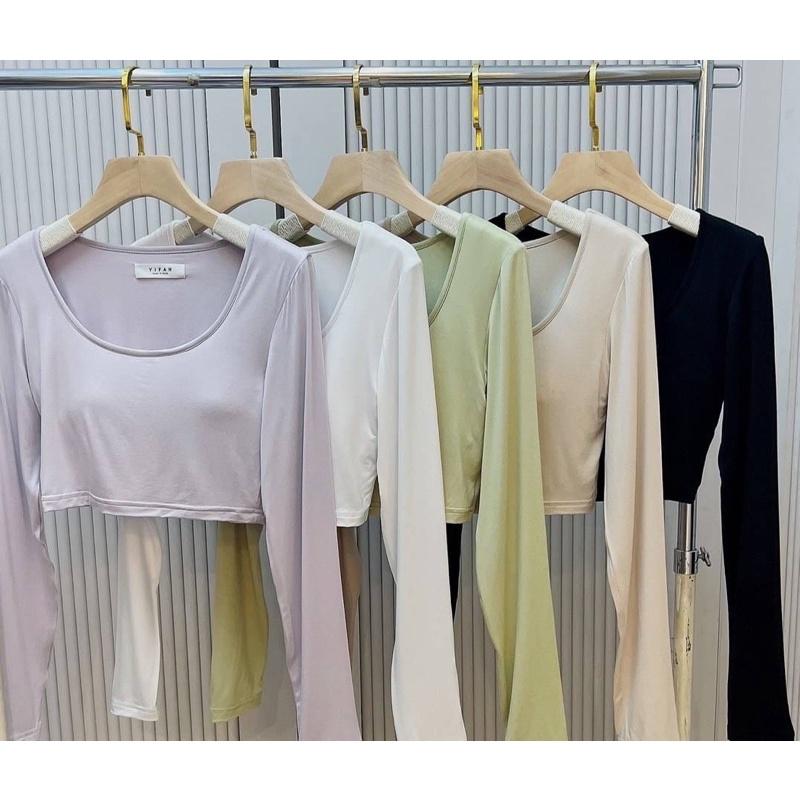 實穿莫代爾棉料短版胸墊T 𝗡𝗘𝗪 𝗔𝗨𝗧𝗨𝗠𝗡-   忽冷忽熱的天氣   常常不知道該穿什麼   莫代爾棉 絕對是妳的第一選擇   面料舒適 彈力極佳 🌝   與肌膚完美貼合 不擠肉不顯胖   內裏已有胸墊 不需要穿內衣   包覆性也是妥妥的唷  ◽️ 𝗖𝗢𝗟𝗢𝗥- 芋粉.白