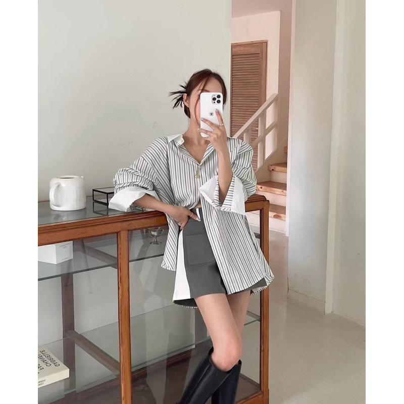 [Y.S ONI] 現貨 🛒直紋襯衫➕拼接式西裝短褲(絕)👍🏻