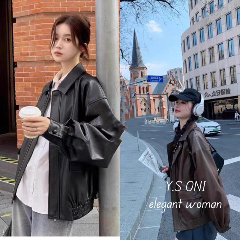 [Y.S ONI ]現貨-個性大口袋寬鬆拉鍊皮外套