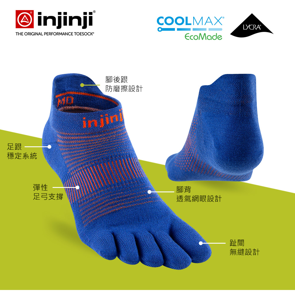- 五趾分離設計,減少趾縫間的皮膚摩擦,避免水泡產生。
