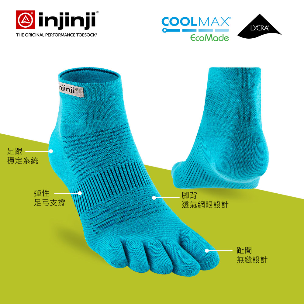 - 五趾分離設計,減少趾縫間的皮膚摩擦,避免水泡產生。