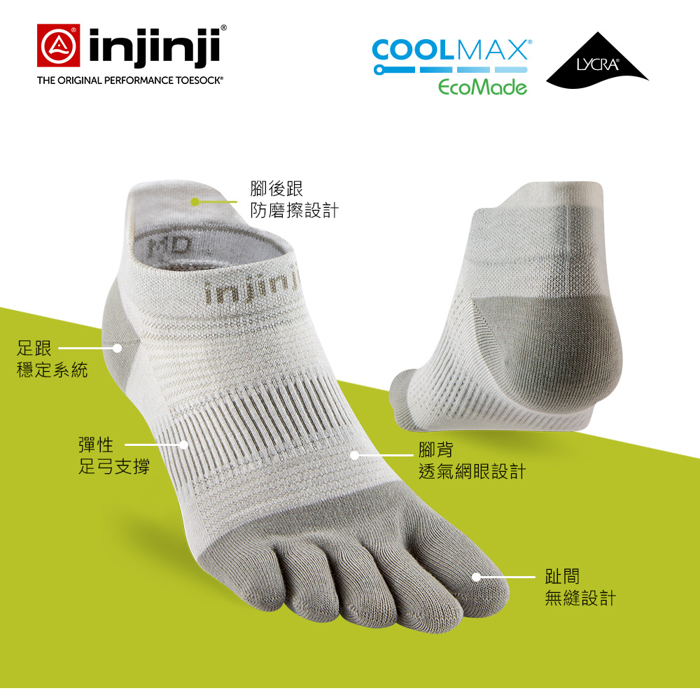 - 隱形襪後跟加高及耐磨防護設計,避免皮膚與鞋子磨擦產生不適感及增加耐用性。