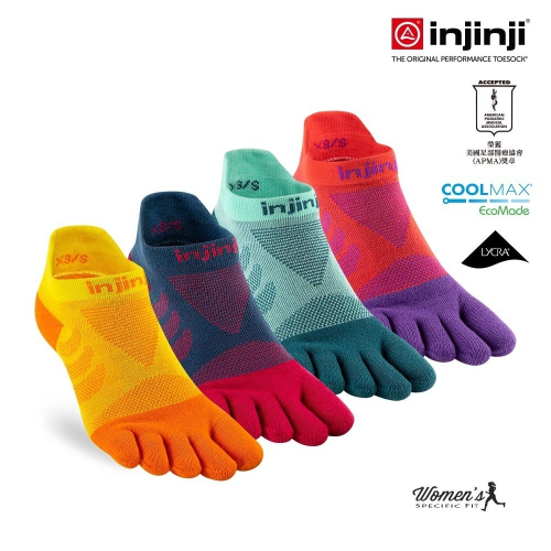 符合女性腳趾設計。- 採用COOLMAX® EcoMade環保再生纖維,提供最佳的吸濕排汗機能,並強化耐磨性及耐用度。
