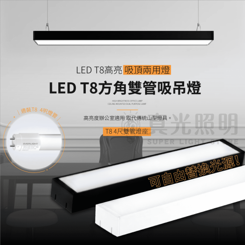 🤩LED T8方角雙管吸吊燈 4呎雙管 🌟新上市!!
