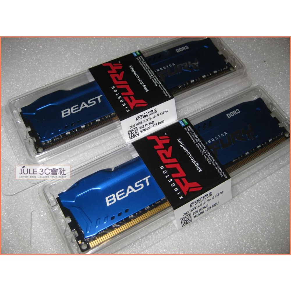 JULE 3C會社-金士頓 FURY DDR3 1600 8G X2 共16G 狩獵者/藍/雙通道/全新 記憶體
