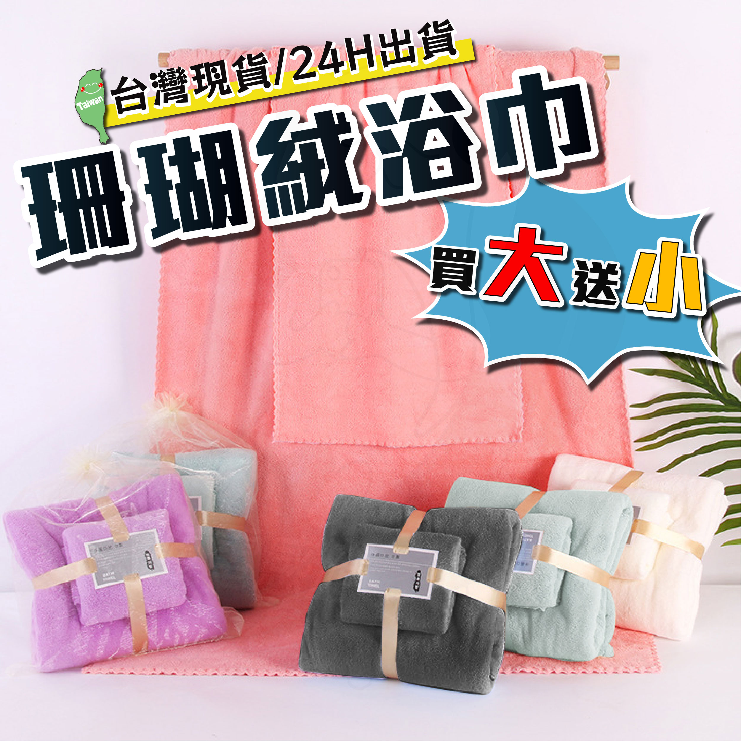 • 浴巾+毛巾 (粉紅)