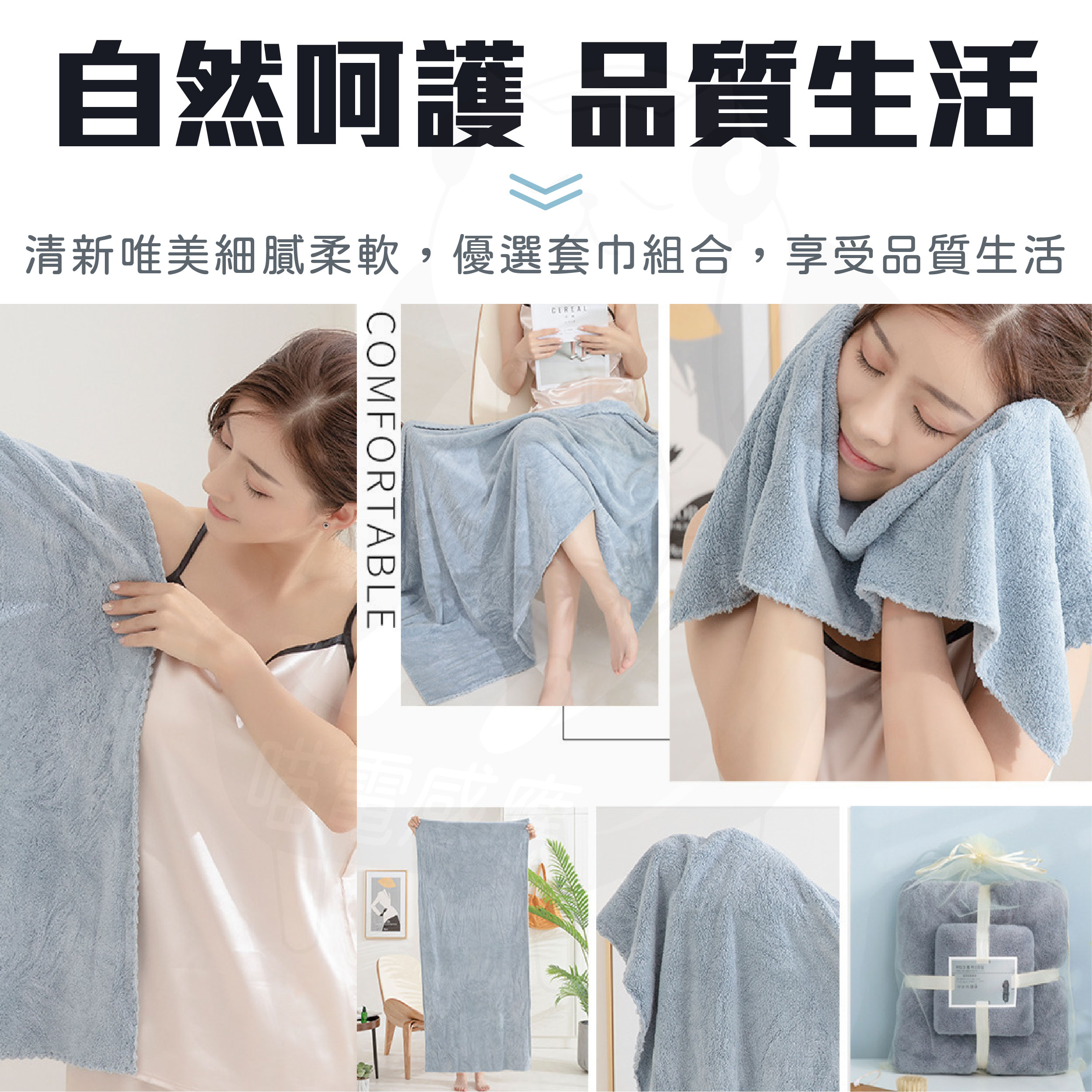 • 浴巾+毛巾 (黑灰色)