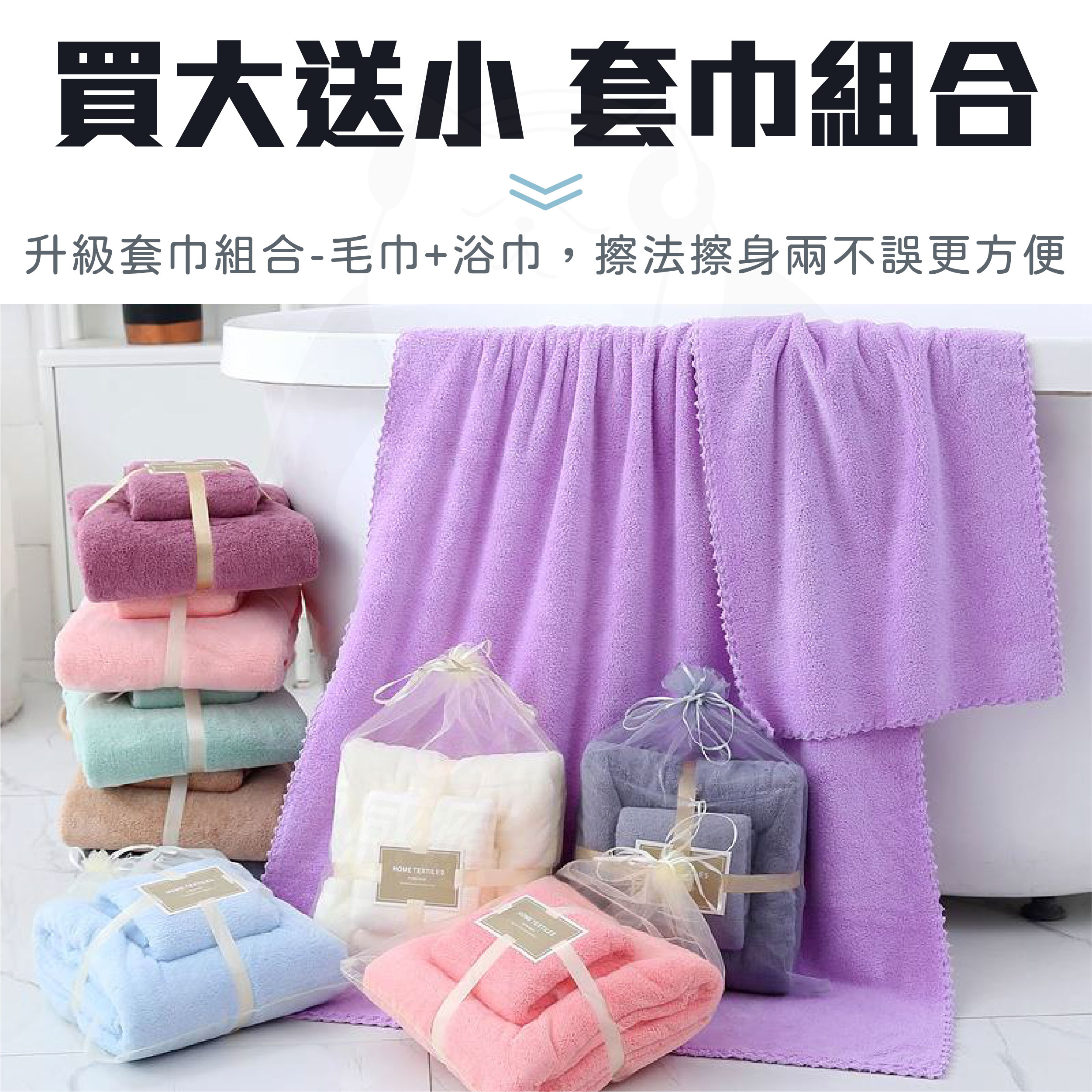 • 浴巾+毛巾 (紫色)