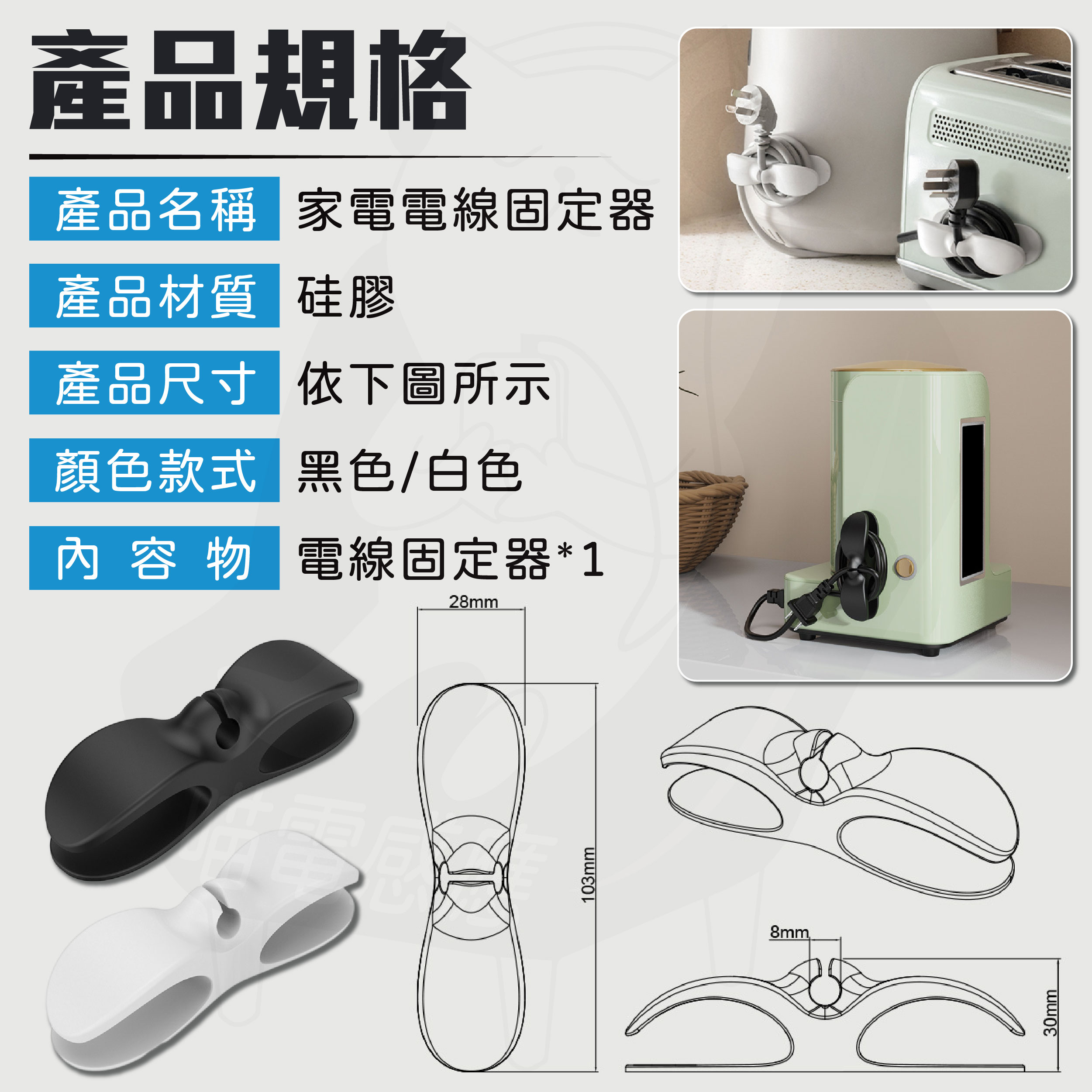 • (黑色) 電線固定器(送助黏劑)