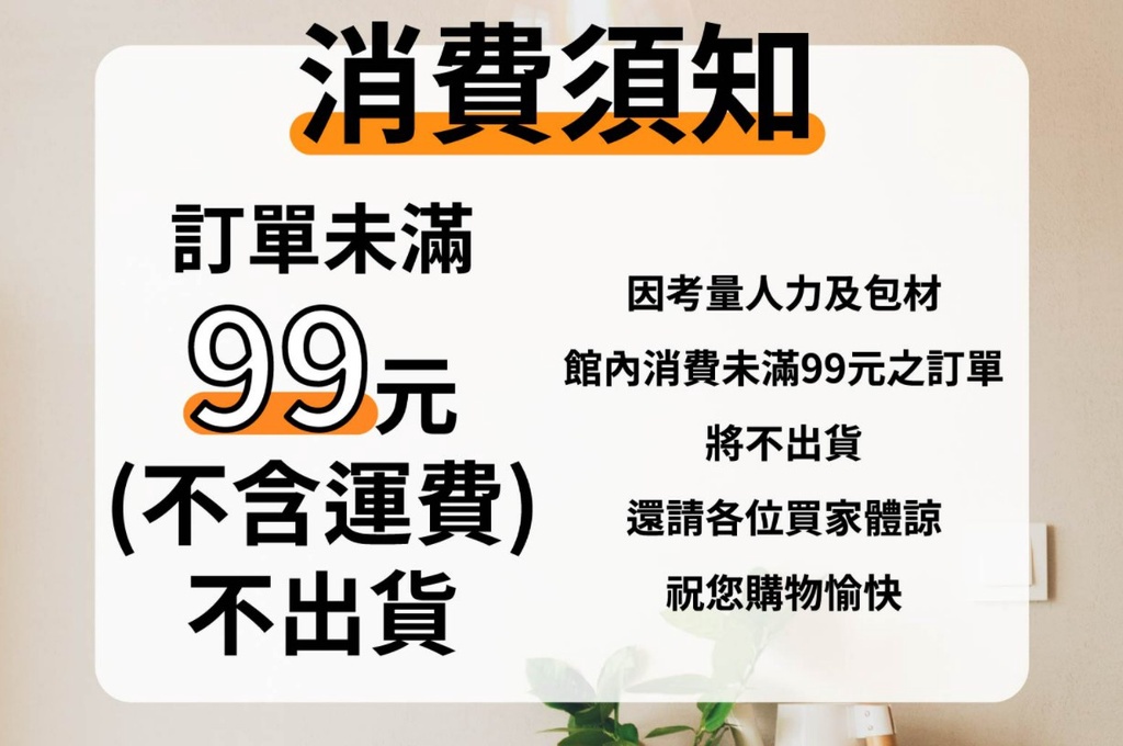 ※ 因人力與包材上漲,訂單須滿99元才出貨 ※