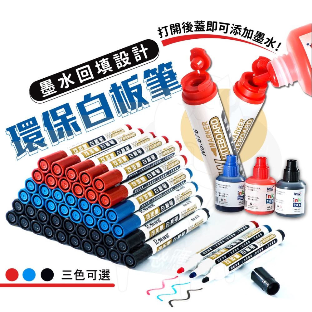 環保白板筆 水性筆【開發票 24H發貨】講師專用筆 可回填墨水的白板筆 黑色藍色紅色 辦公 文具 水性白板筆