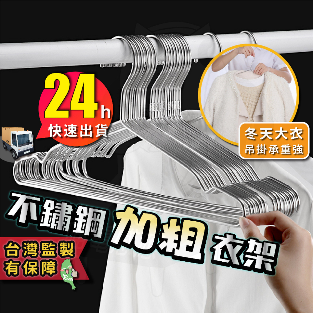 加粗實心不銹鋼衣架 [24H發貨][台灣現貨]45cm 42cm 衣架 不鏽鋼曬衣架 白鐵衣架 防滑衣架 掛衣架 曬衣架