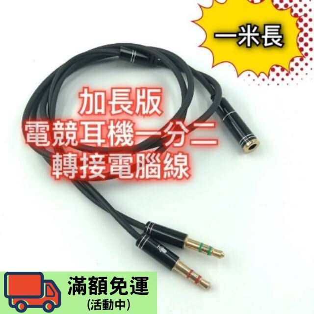 1米加長版] 一分二轉接線 1分2音源線 耳麥線 電競耳機轉接桌電 賣場另有二轉一線 配件專賣
