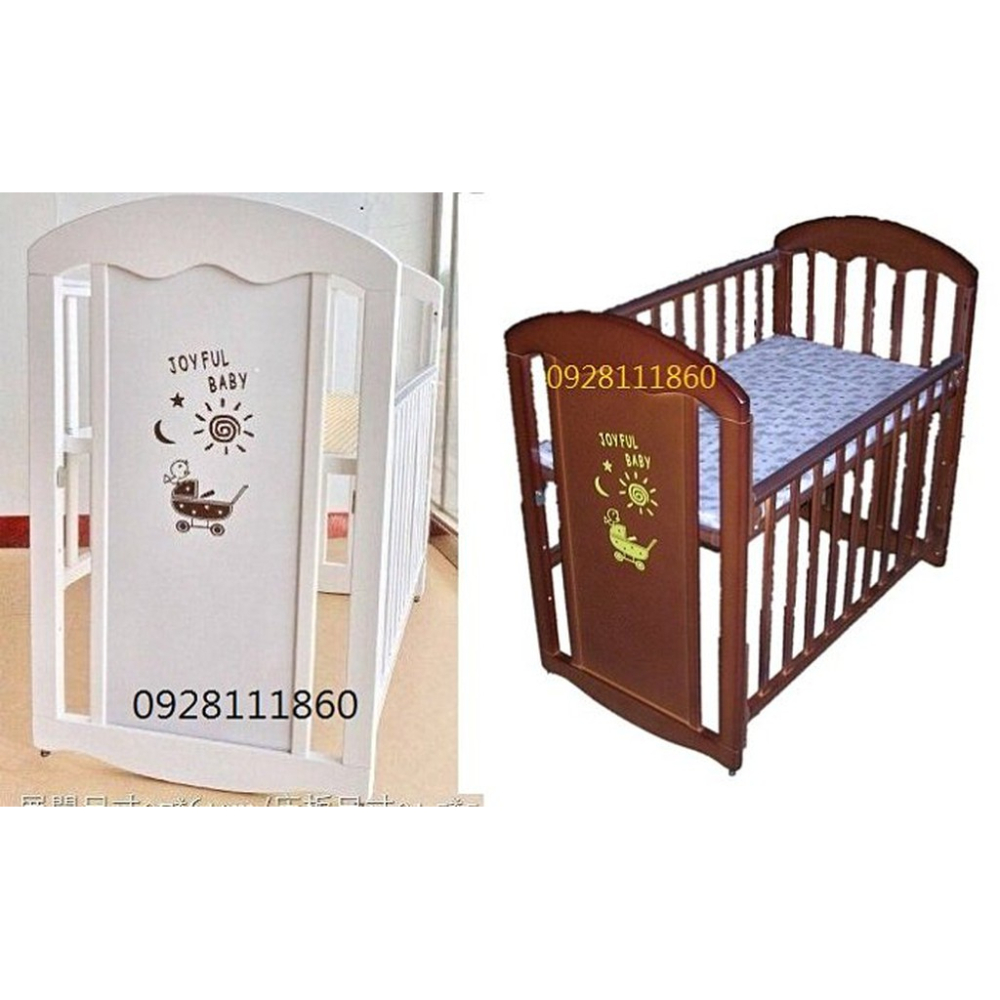 請詳閱"關於我"~可收到貨再轉帳付款,安心購買~連絡客服使用安心購買服務~台灣製造 顏色: 白色. 咖啡色 附床墊 輪子拆下可當搖床~ ●雙邊防咬護條。●床板高度可做三段式調整 ●柵欄上下可調●附透氣藤板與泡棉床墊。●內附4個輪子尺寸:外徑:長97 *寬61 (公分) 床板:長91.5 *寬51 (公分)
