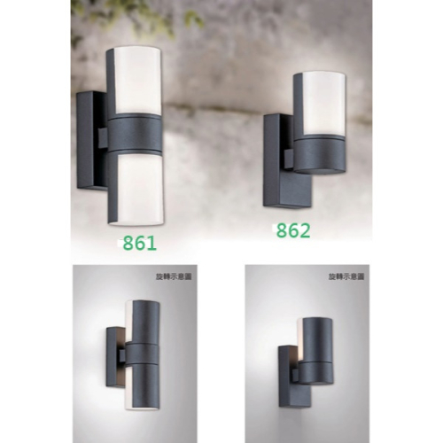 商品尺寸/光源:861:W80*H250*D125mm/LED12W暖(燈頭可向左旋轉90度角,向右旋轉180度角)
