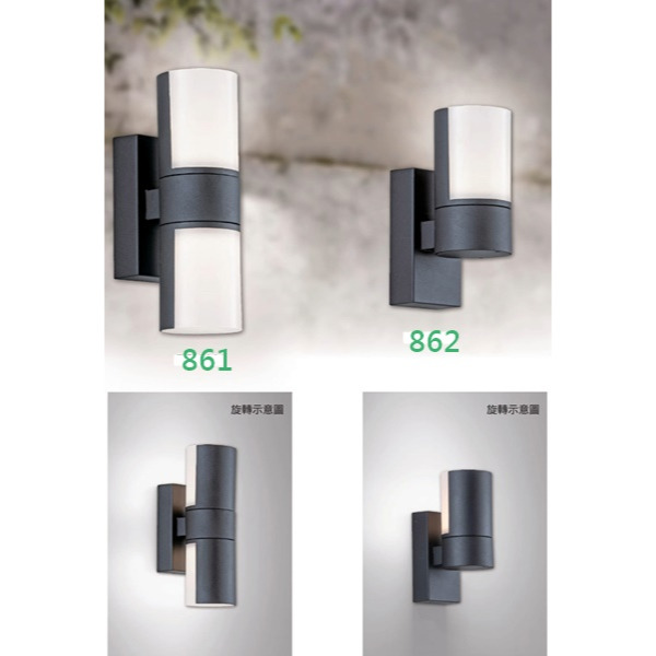 862:W80*H195*D125mm/LED6.5W暖白(燈頭可向左旋轉90度角,向右旋轉180度角)