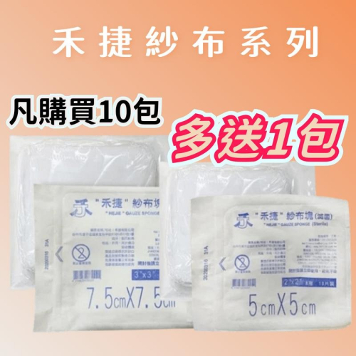 💯 免運發票含稅 買10送1 禾捷 滅菌 10片/包純棉紗布 紗布塊 2吋 3吋 4吋 8P 禾捷 不織布