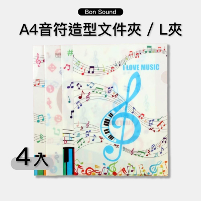 【BS】開發票 L夾 『一組4入』音符文件夾 直式 文件夾 資料夾 音樂文具 獎品 禮物 譜夾