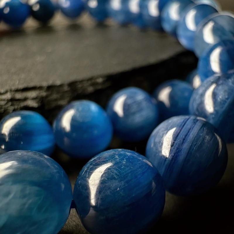 藍晶石因為礦物節理的關係 在磨製過程中無可避免需要灌膠磨製 差異在製作過程中所使用的膠有沒有額外加色 使用色膠的品項都會是整顆全藍且漂亮 天然色的藍晶石顏色會由內而外深淺不一如賣場所示 如果對於灌膠比較敏感的買家請謹慎下標