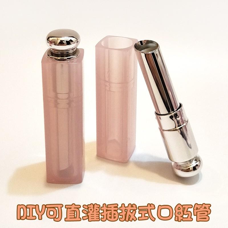 ●現貨可直灌11.1mm高質感DIY粉色插拔式銀質口紅管空盒●手工自製空管/化妝品/唇管/唇膏 護唇膏口紅殼 口紅管