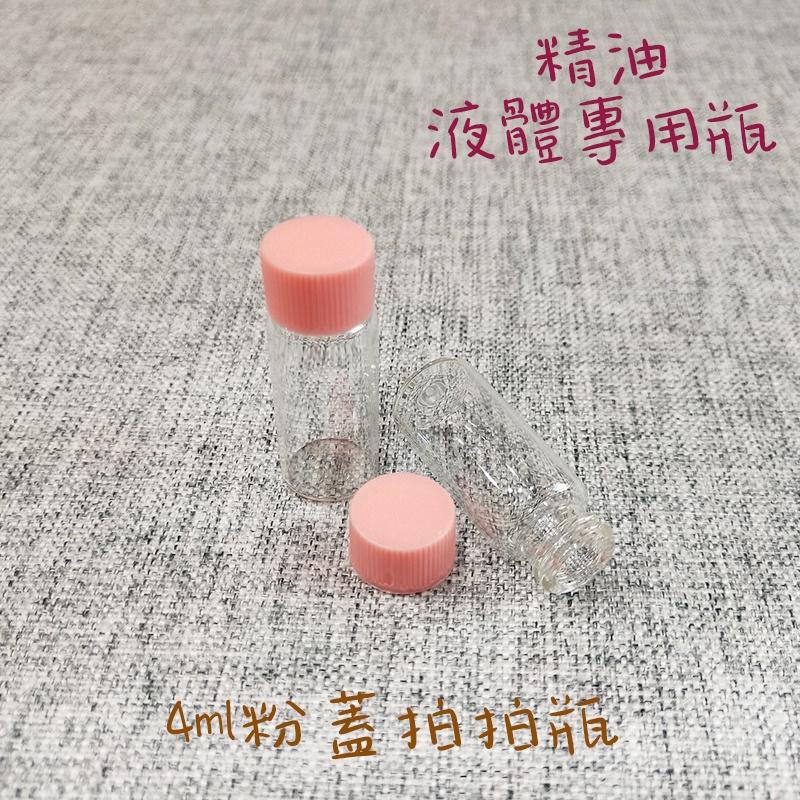 ●小樣品分裝小物~粉色蓋玻璃4ml旋蓋香水精油分裝空瓶●玻璃瓶身~試香瓶 小樣品 拍拍瓶 分裝瓶 粉色 玻璃分裝瓶