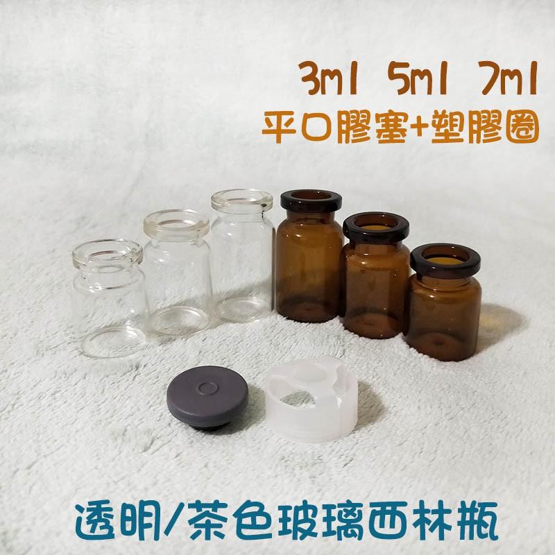 ●現貨~平口膠塞透明/茶色玻璃西林瓶安瓶●3ml 5ml 7ml 精華液 滴瓶~保養品/精油~旅遊分裝空瓶 塑膠圈 安瓶