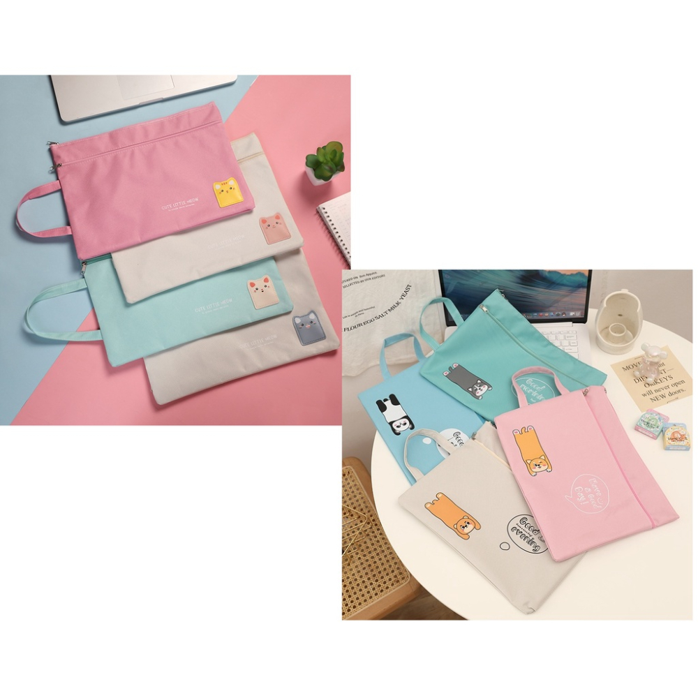 可愛動物:粉色狗狗、藍色熊貓、米色小熊、果綠灰狗