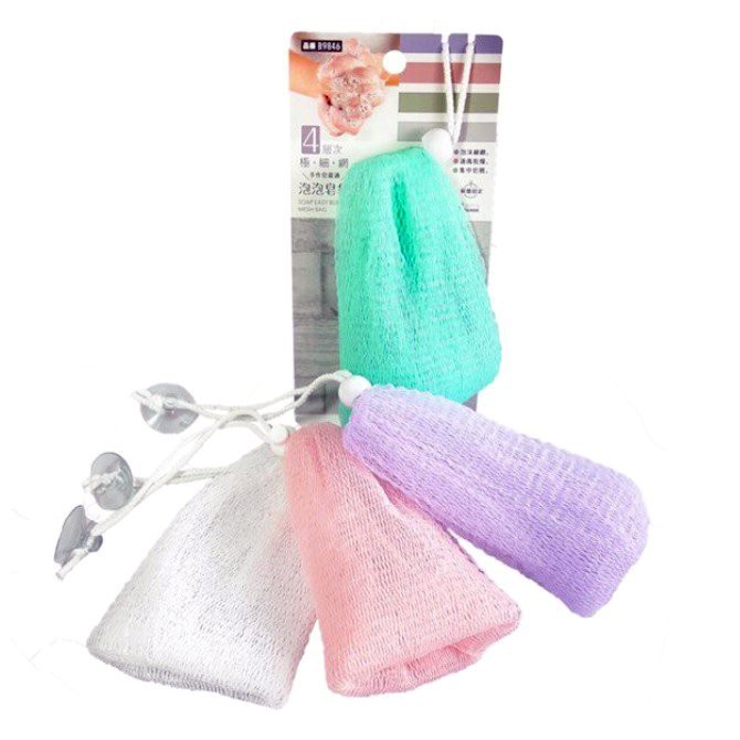 拉繩附繩扣,可收緊袋口,肥皂不會滑落皂袋外,拉繩設計可吊掛收納