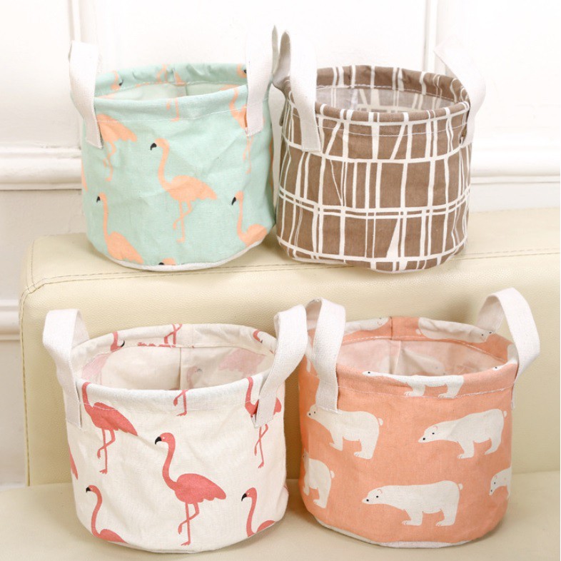 GY.Ж 超Q清新風布藝棉麻帶提手收纳盒.收納籃.衣櫃衣物小物收納籃.置物籃◇
