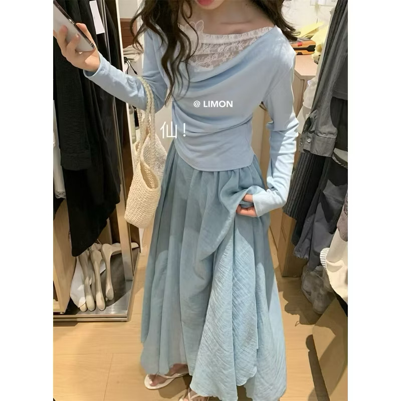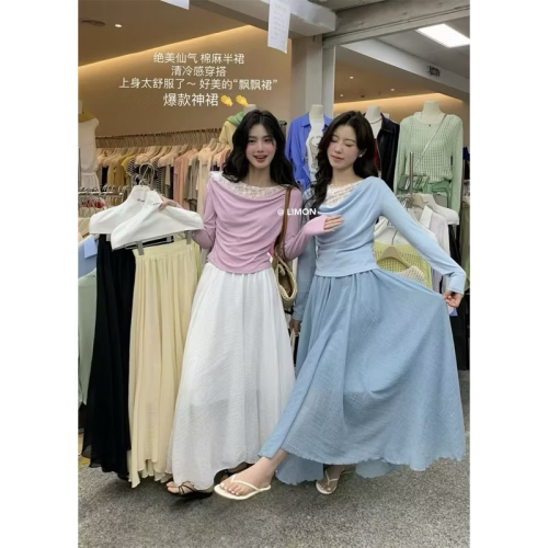 𝙍𝙪𝙡𝙖🎀 韓系 現貨 The Lemon爆款絕美仙氣 氣質美人鬆緊帶不規則剪裁長裙*4色 835849