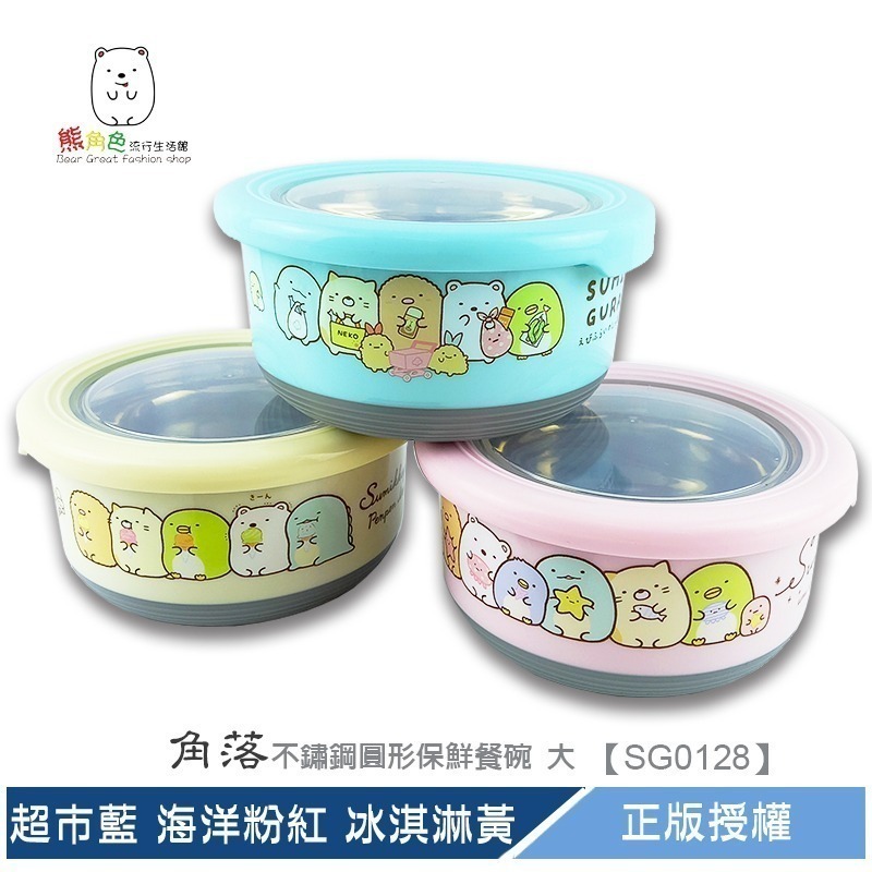 角落小夥伴 不鏽鋼圓形保鮮餐碗 防滑碗 止滑碗 大 超市藍 海洋粉紅 冰淇淋黃 【SG0128】 熊角色流行生活館