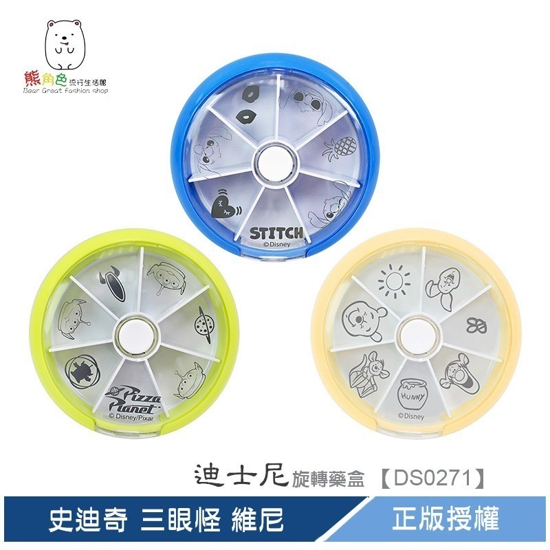 #正版授權#迪士尼#旋轉小收納盒#旋轉藥盒#萬用盒#置物盒#史迪奇#三眼怪#維尼