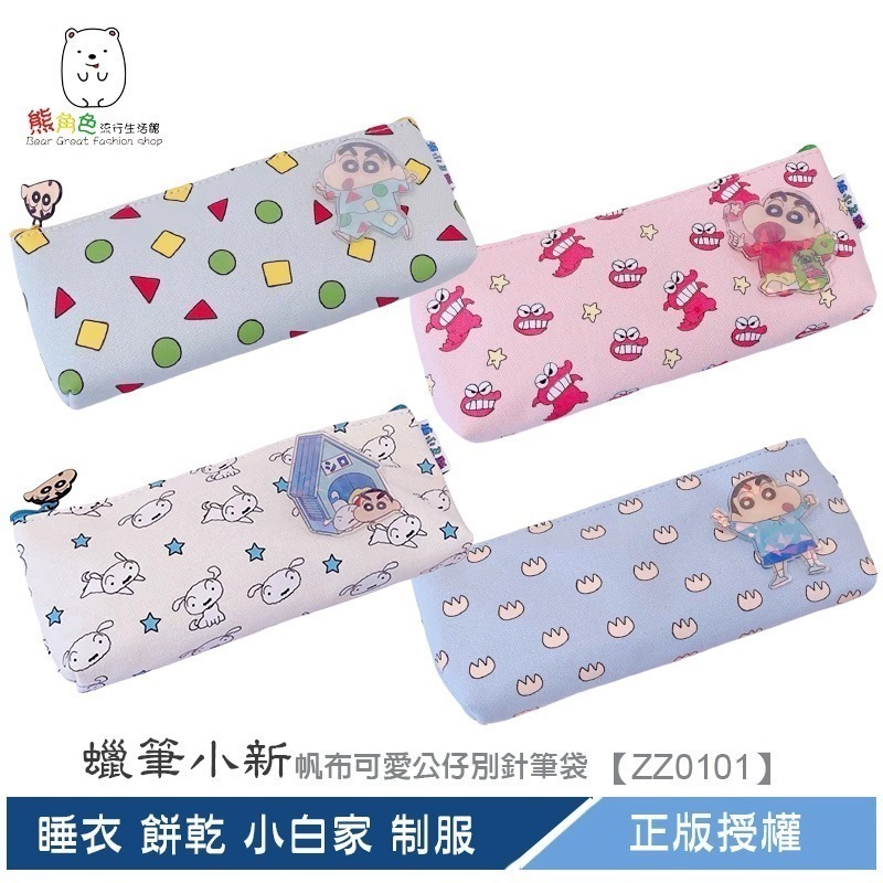 蠟筆小新 帆布可愛公仔別針筆袋 帆布三角筆袋 睡衣 餅乾 制服 小白家 【ZZ0101】 熊角色流行生活館