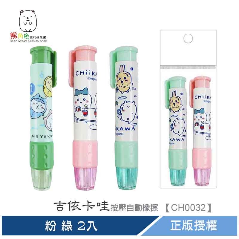 #正版授權#吉伊卡哇#按壓自動橡擦#橡皮擦#橡擦#玫瑰粉#灰藍#草綠#餐桌粉#水槍綠