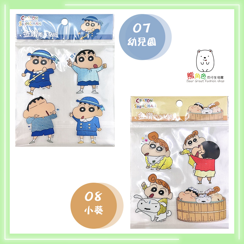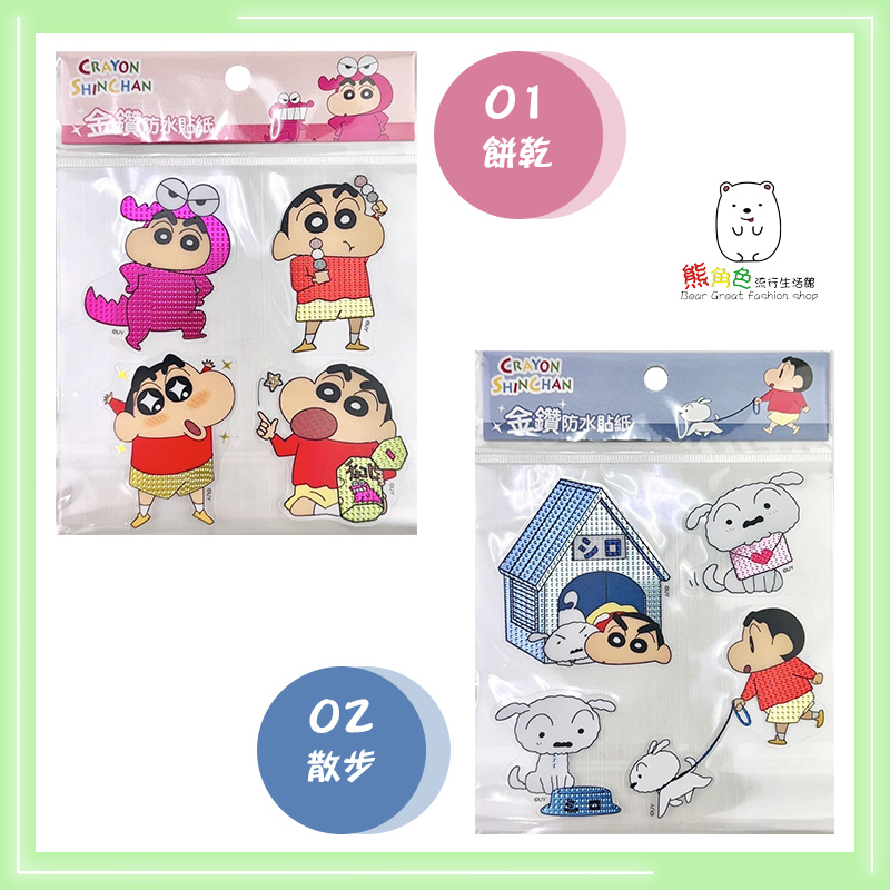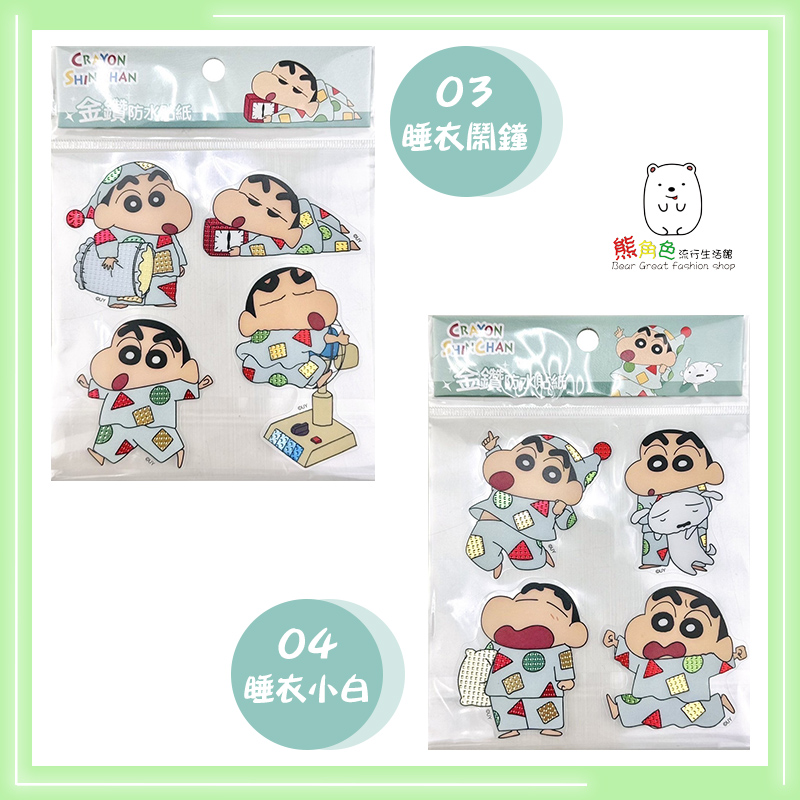 #正版授權#蠟筆小新#金鑽防水貼紙#可愛貼紙#餅乾#散步#睡衣鬧鐘#睡衣小白#小白#動感超人#幼兒園#小葵