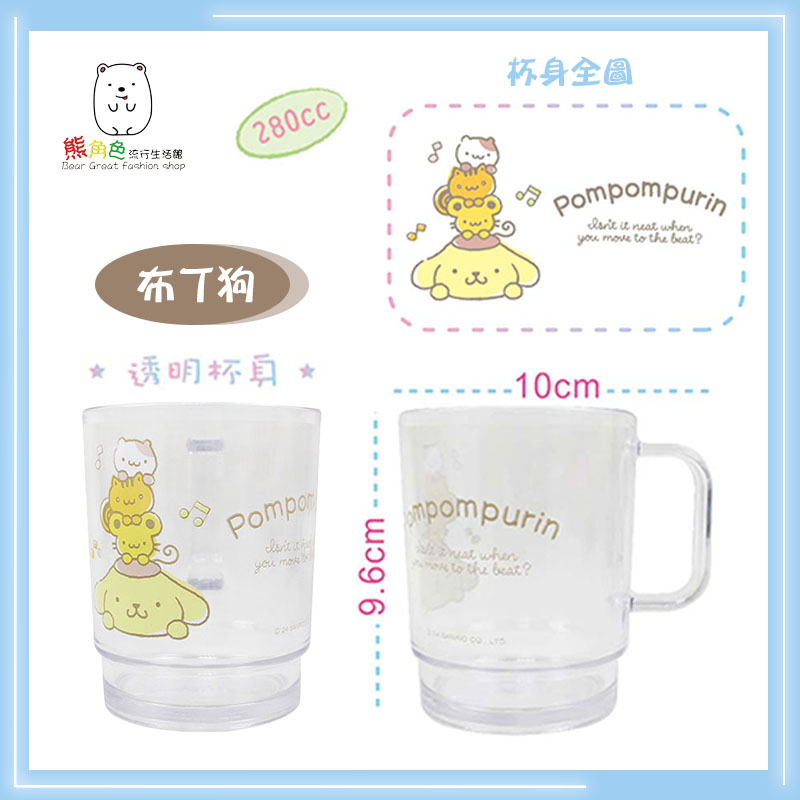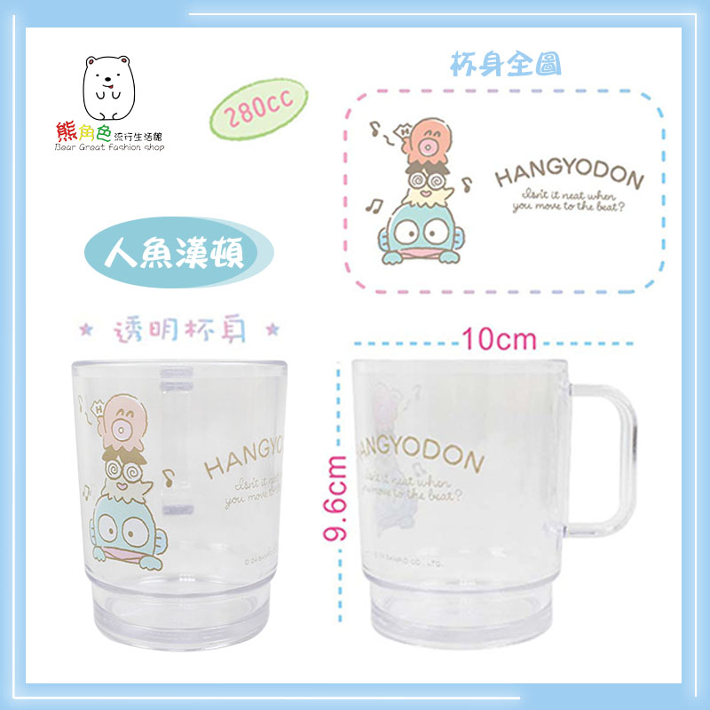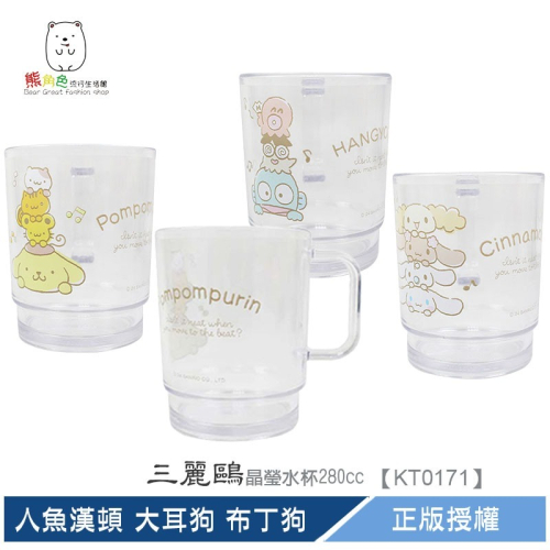 #正版授權#三麗鷗#晶瑩水杯280cc#AS透明水杯#人魚漢頓#大耳狗#布丁狗