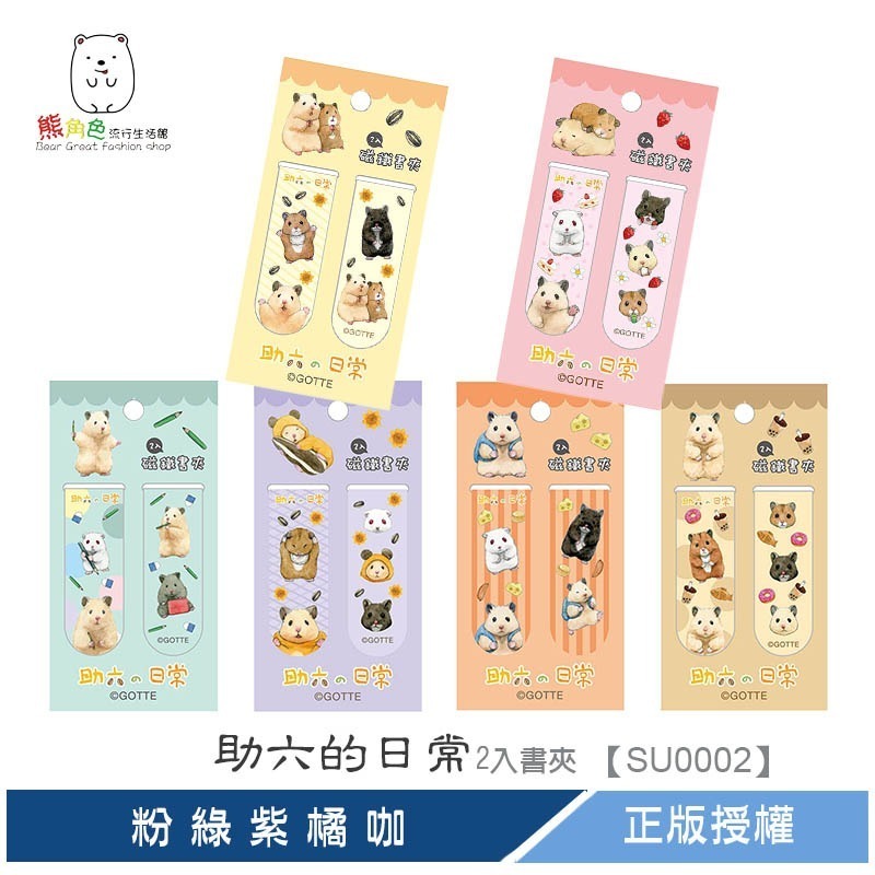 助六的日常 磁鐵書夾2入 書籤 書卡 黃 粉 綠 紫 橘 咖 【SU0002】 熊角色流行生活館