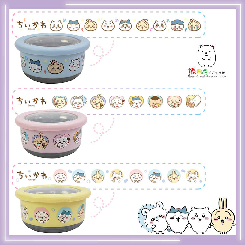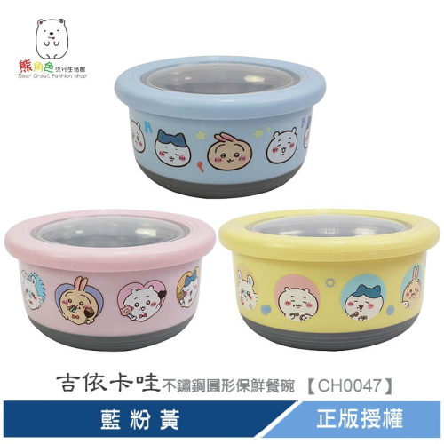 #正版授權#吉伊卡哇#不鏽鋼圓形保鮮餐碗#止滑碗#防滑碗#藍#粉#黃