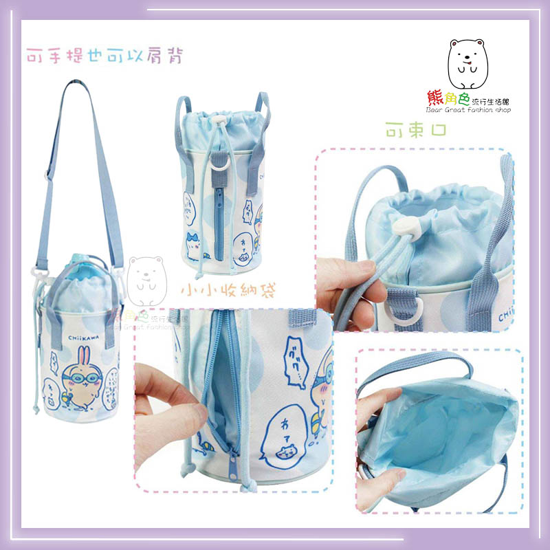 #正版授權#吉伊卡哇 #束口水壺袋#飲料提袋#收納袋#咖啡#藍#粉紅