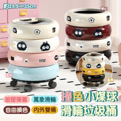 MU現貨 出清 【撞色小煤球】滑輪垃圾桶
