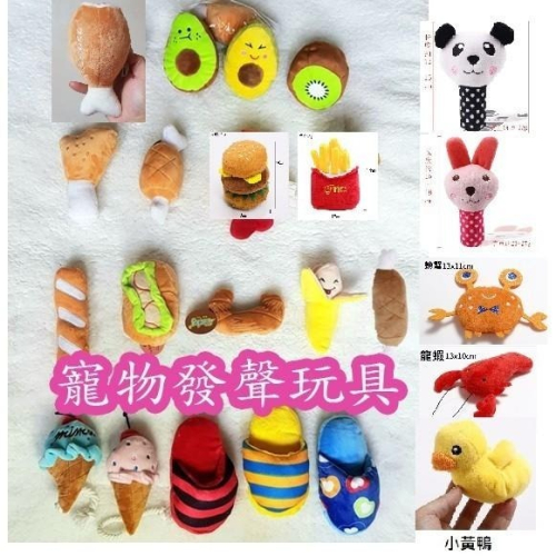 多款寵物發聲玩具 可愛絨毛發聲玩具 雞腿 漢堡薯條 麵包 奶瓶 酒瓶 棒棒糖 冰淇淋 龍蝦 螃蟹 拖鞋玩具 小黃鴨紅蘿蔔