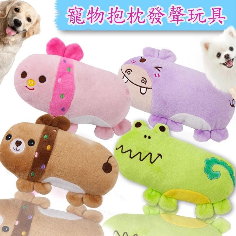 可愛寵物抱枕發聲玩具 毛絨玩具粉豬、棕熊、綠青蛙、紫河馬