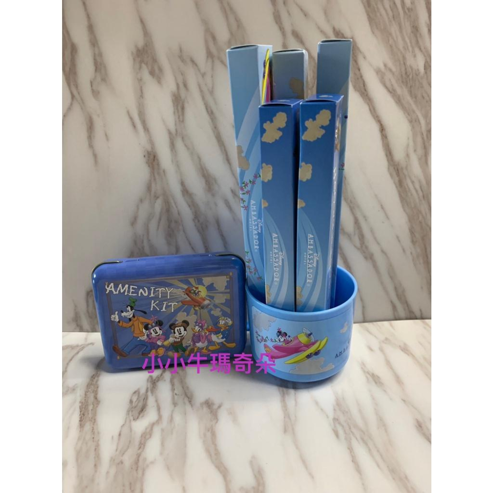~小小年瑪奇朵~日本東京迪士尼大使飯店Disney AMBASSADOR HOTEL 盥洗組(牙刷.漱口杯.針線盒)