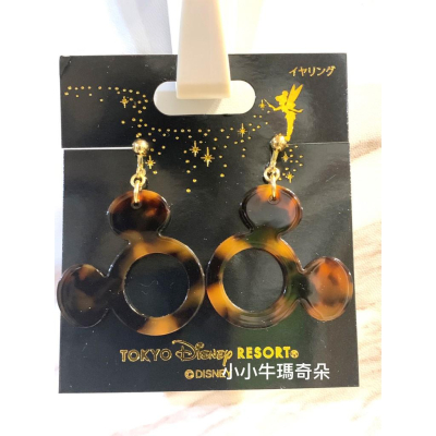 ~小小牛瑪奇朵~日本東京迪士尼米奇造型玳瑁花紋夾式耳環
