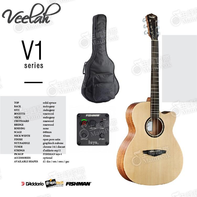 【送十大配件】全新 Veelah V1-OMCE 民謠吉他 雲杉單板 木吉他 缺角 OM桶 含FISHMAN拾音器可插電