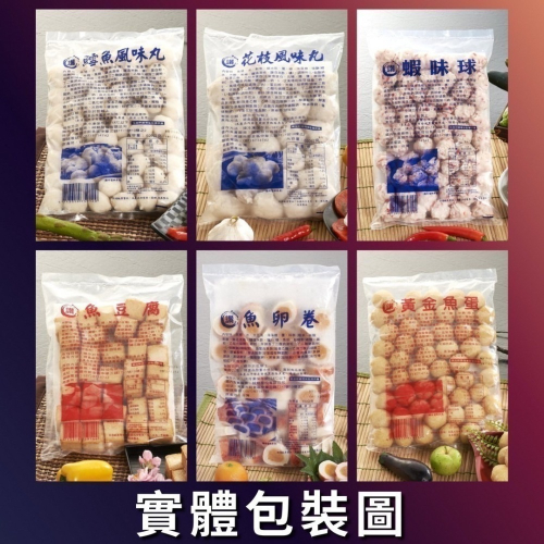 口味:鱈魚風味丸、花枝風味丸、蝦味球、魚豆腐、魚卵捲、黃金魚蛋