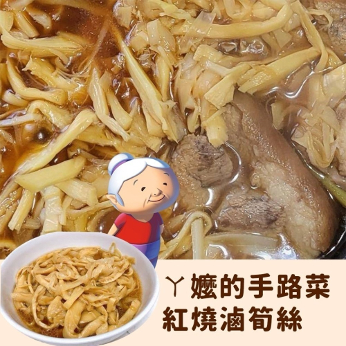 成分:筍絲、水、醬油、冰糖、油蔥酥(紅蔥頭、棕櫚油、玉米澱粉)、蔥、山梨糖醇(甜味劑)、薑、鹽、八角、辣椒、異抗壞血酸鈉(抗氧化劑)、紅麴色素(酒精、紅麴色素)